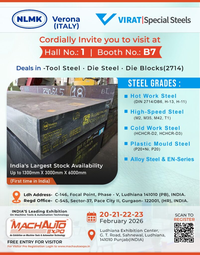 The countdown has begun for Mach Auto Expo 2026, India’s premier exhibition for industrial innovation, and this year promises something truly special. Virat Special Steels Pvt. Ltd., a trusted name in premium steel solutions, is proud to partner with NLMK Verona, Europe’s renowned tool steel manufacturer, to display the cutting-edge products and global expertise under one roof.